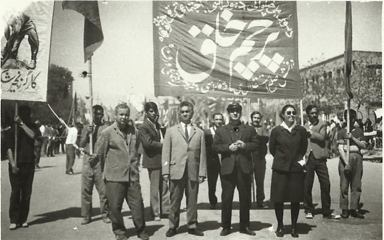 شرکت کنندگان با پرچم های سرخ و پوسترها: